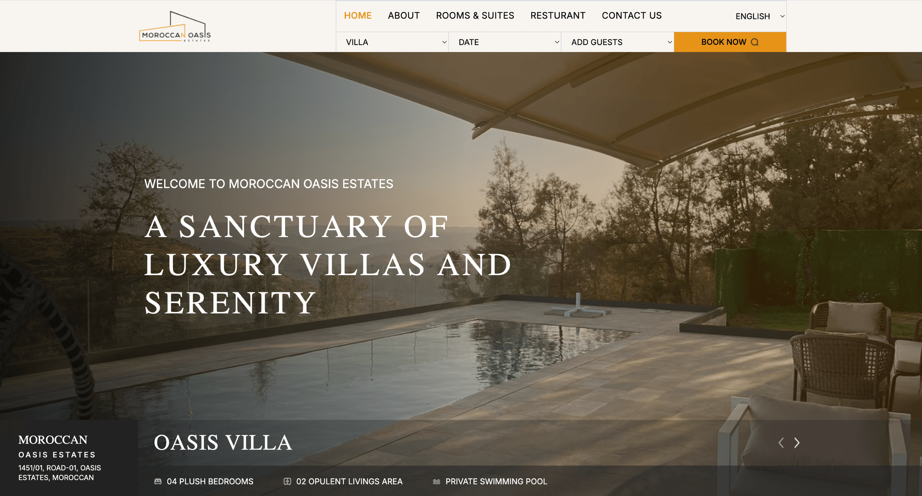 Moroccan Oasis Estates needed a straightforward landing page to introduce their brand and highlight their luxury villa offerings.